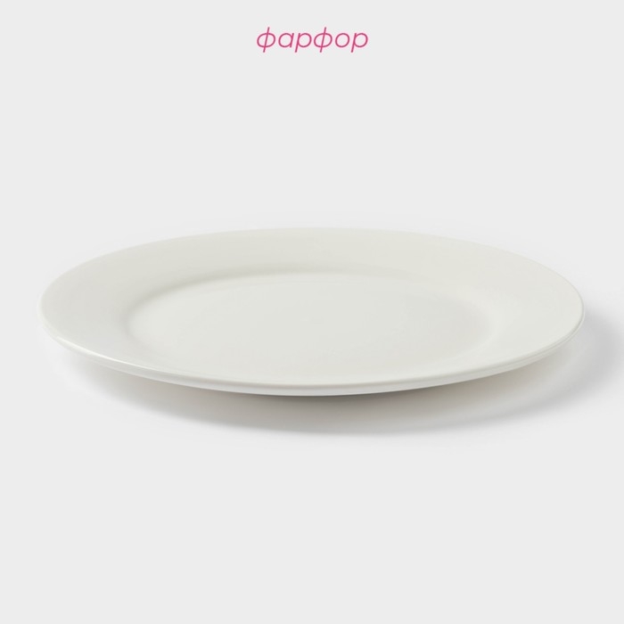 Тарелка фарфоровая обеденная с утолщённым краем Доляна White Label, d=20 см, цвет белый