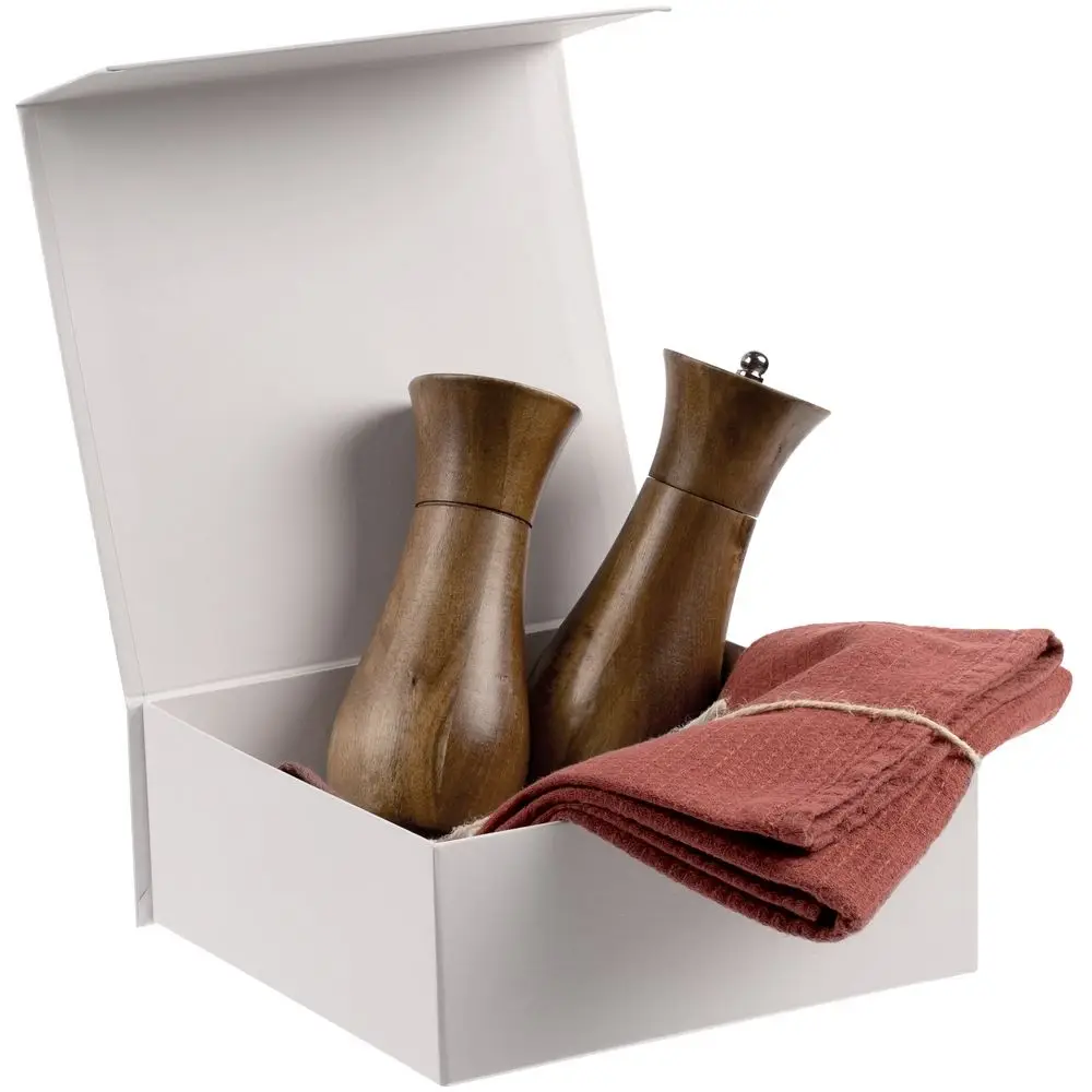 Коробка выполнена из переплетного картона, кашированного дизайнерской бумагой Senzo, с крышкой на магнитах.