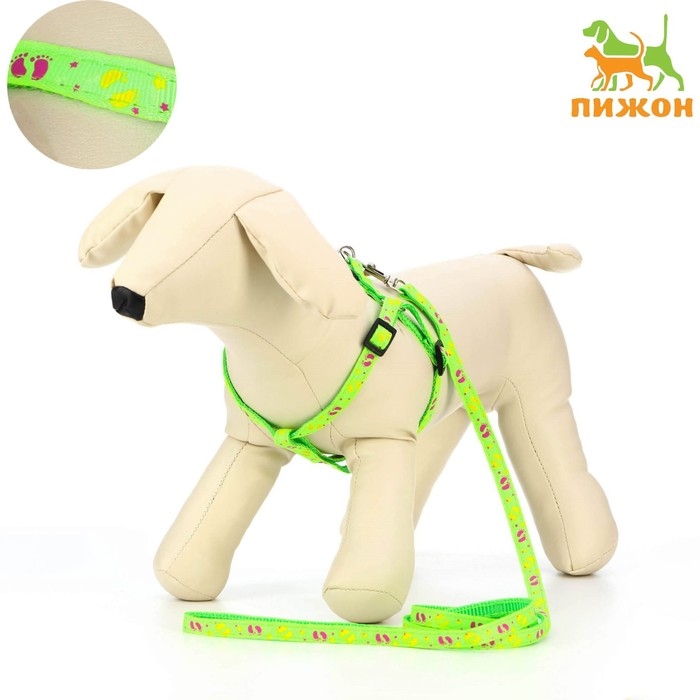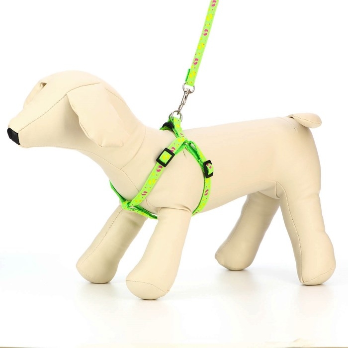 Комплект "Цветные следы", поводок 120 х 1 см, ОГ 23-35 см, зелёный