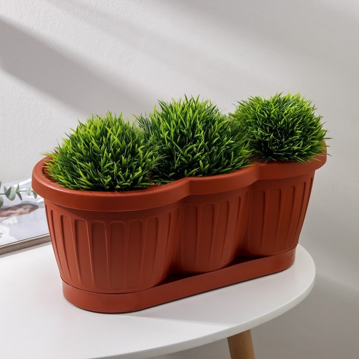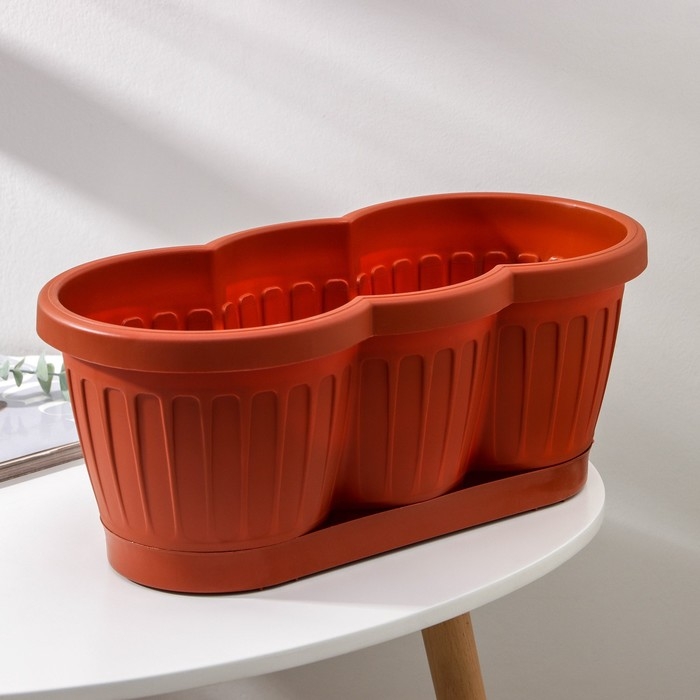 Ящик балконный с поддоном, 40 см, цвет терракотовый