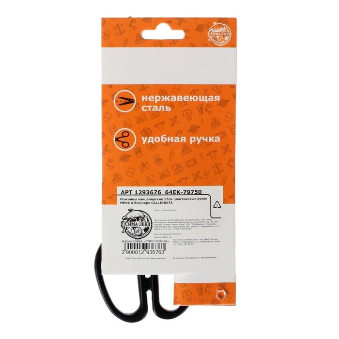 Ножницы канцелярские 17 см, CALLIGRATA, пластиковые ручки, в блистере