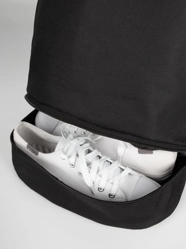 Вместительный рюкзак с отделением для обуви пригодится на тренировке или в короткой поездке — дополнительная пара обуви отделена от основного объема и не пачкает одежду.Выдерживает нагрузку до 10 кг.