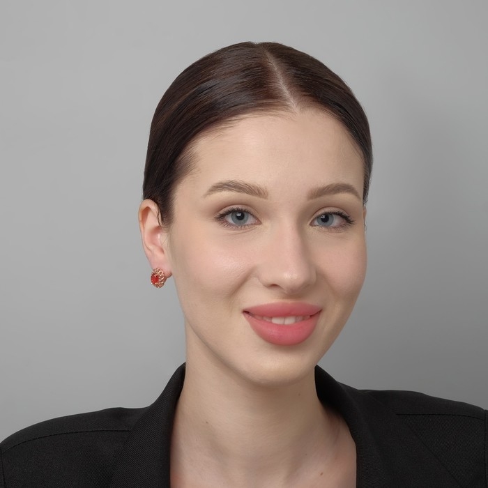 Серьги со стразами «Эдель» овал в ажуре, цвет красный в золоте