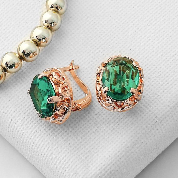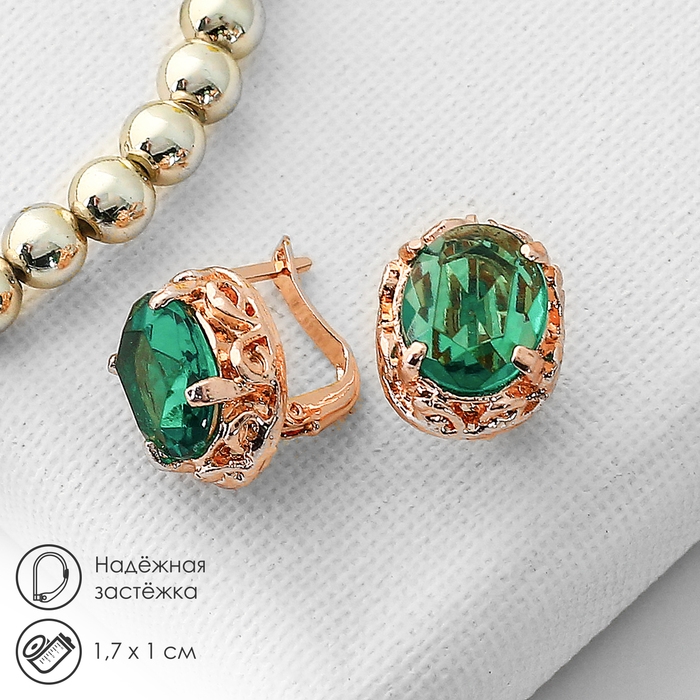 Серьги со стразами «Эдель» овал классика, цвет изумрудный в розовом золоте