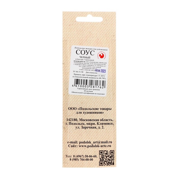 Соус черный, набор 5 штук (длина65± 1мм;диаметр 10.5 ± 0,6 мм), в блистере