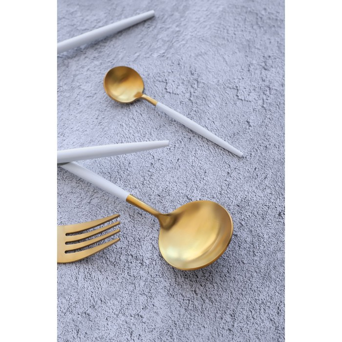 Столовые приборы из нержавеющей стали Magistro «Фолк», 4 предмета, цвет металла золотой, белые ручки