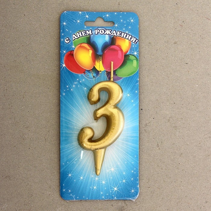 Свеча для торта цифра "Золотая", 5,5 см, цифра "3"