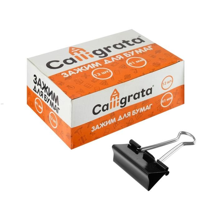 Набор зажимов для бумаг, чёрные, 41 мм, 12 штук, в картонной коробке