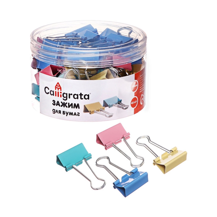Набор зажимов для бумаг, цветные, 19 мм, 40 штук, 4 цвета, в пластиковой тубе, МИКС, CALLIGRATA