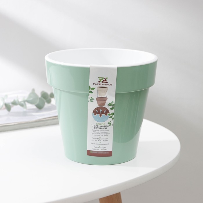 Кашпо для цветов со вставкой «Порто», 1 л, цвет нефрит