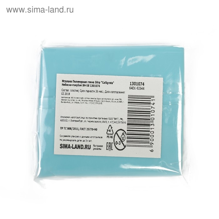 Полимерная глина Calligrata 50 г, небесно-голубая
