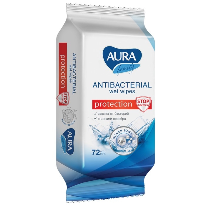 Влажные салфетки Aura family, антибактериальные, 72 шт.