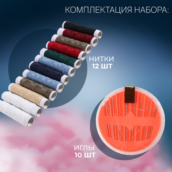 Швейный набор, 22 предмета, в блистере, 20 × 10,5 см, цвет МИКС