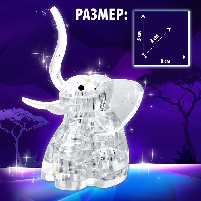 3D пазл «Слон», кристаллический, 20 деталей, цвета МИКС