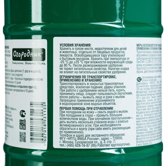 - ЛЁГКОСТЬ ПРИМЕНЕНИЯ. Благодаря жидкой форме удобрение легко дозировать и наносить на почву или растения. Это позволяет сэкономить время и усилия при обработке участка.