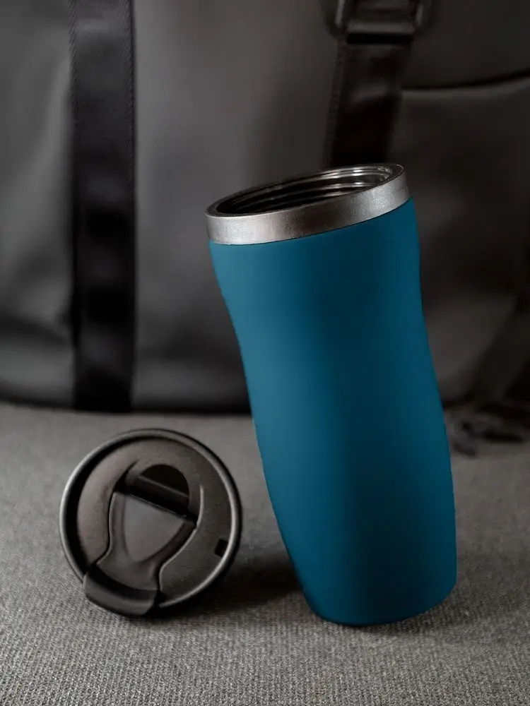 Двухслойная конструкция из нержавеющей стали снаружи и пищевого пластика внутри. Герметичная завинчивающаяся крышка с откидным клапаном для питья. Покрытие софт-тач. В отверстие в крышке можно вставить шнурок для удобного ношения стакана на руке. Шнурок в комплект не входит.