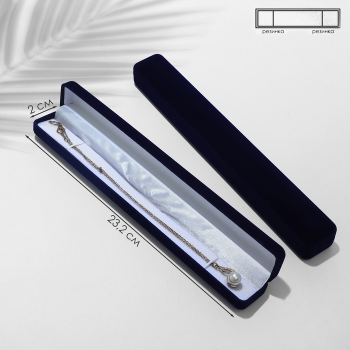 Футляр бархатный под браслет/цепочку/часы «Пенал», 23,5×3, цвет синий, вставка белая