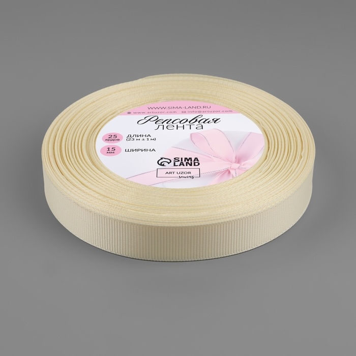 Лента репсовая, 15 мм, 23 ± 1 м, цвет молочный №08