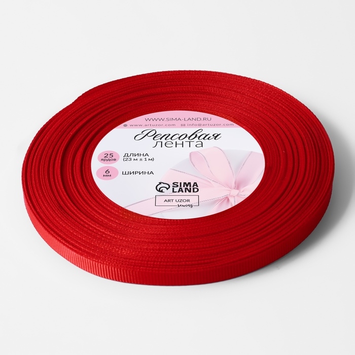 Лента репсовая, 6 мм, 23 ± 1 м, цвет красный №26
