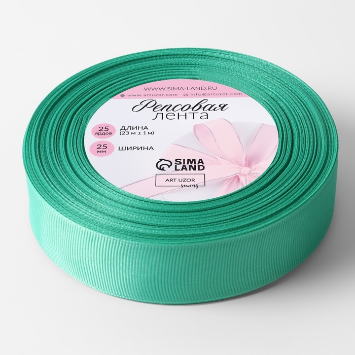 Лента репсовая, 25 мм, 23 ± 1 м, цвет бирюзовый №155