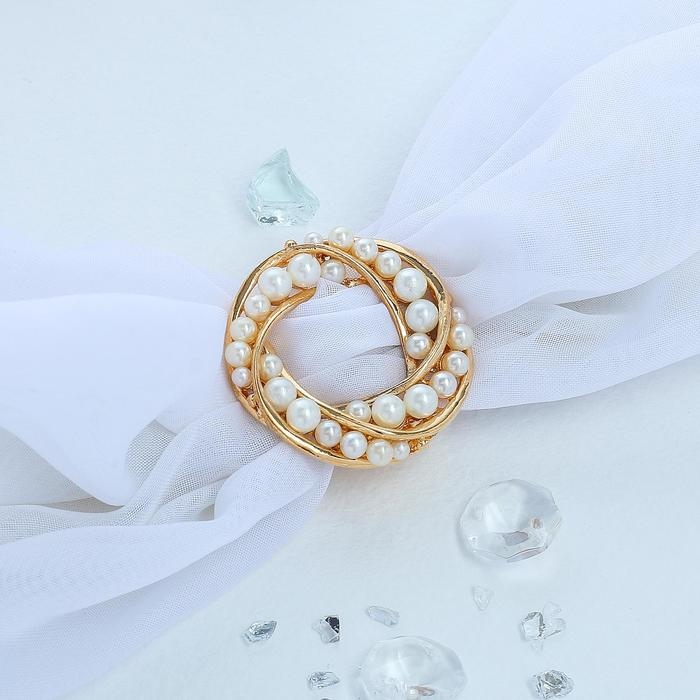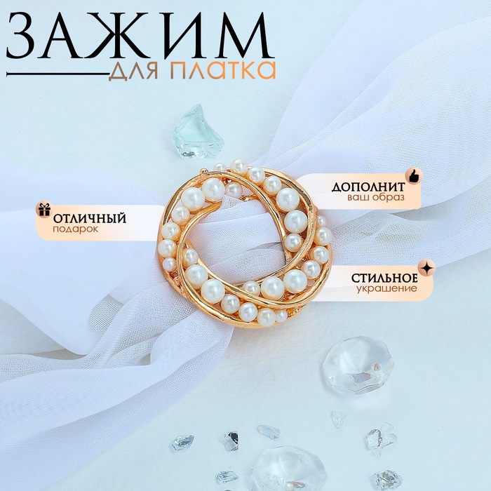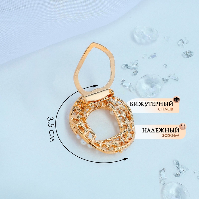 Зажим для платка «Жемчужный круг», цвет белый в золоте