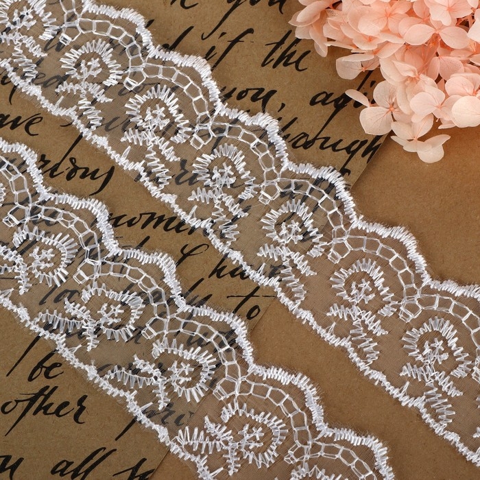 Кружево на сетке, 105 мм × 11 ± 1 м, цвет белый