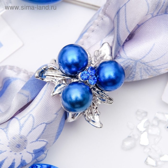 Кольцо для платка «Букет», цвет бело-голубой в серебре