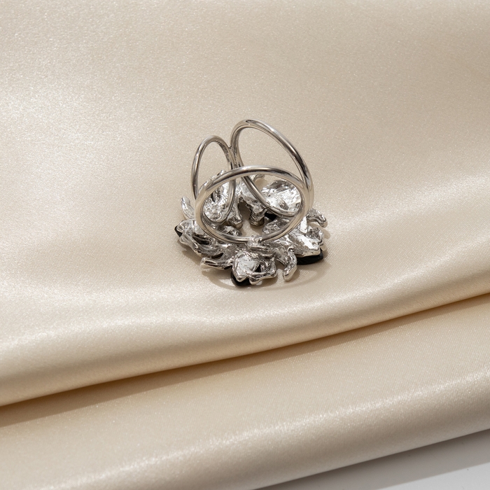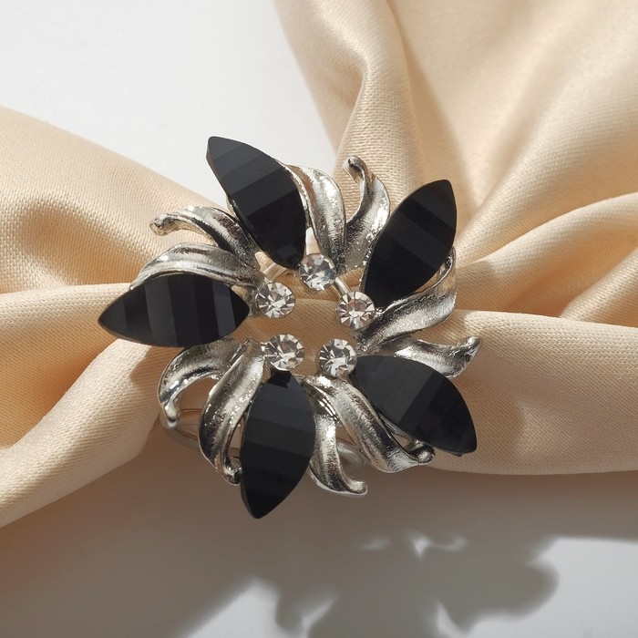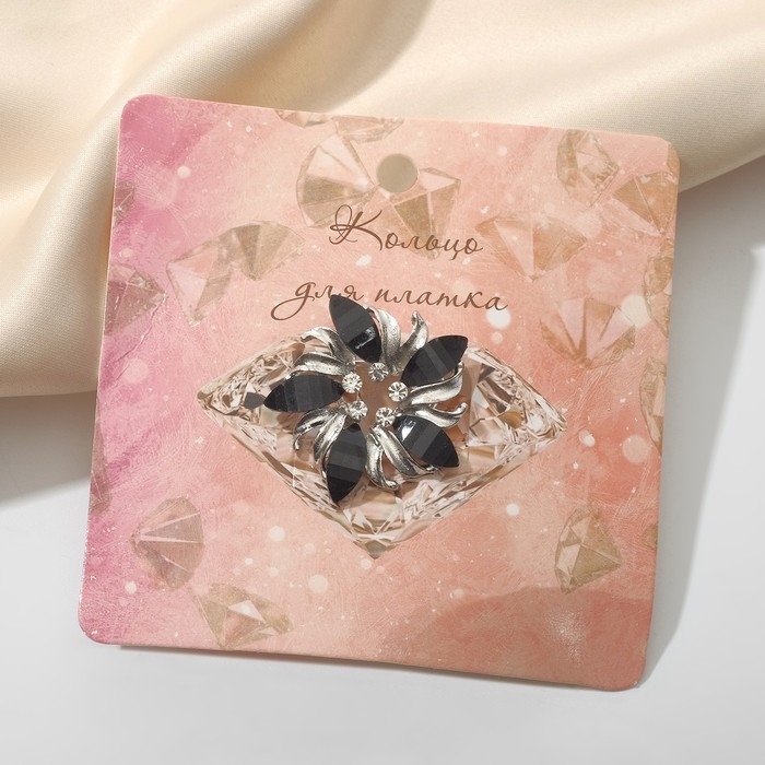 Кольцо для платка «Цветок», круг, цвет чёрный в серебре