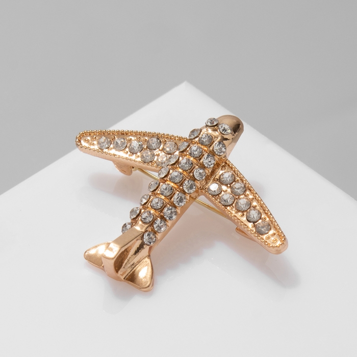 Брошь «Самолёт» покоритель вершин, цвет белый в золоте