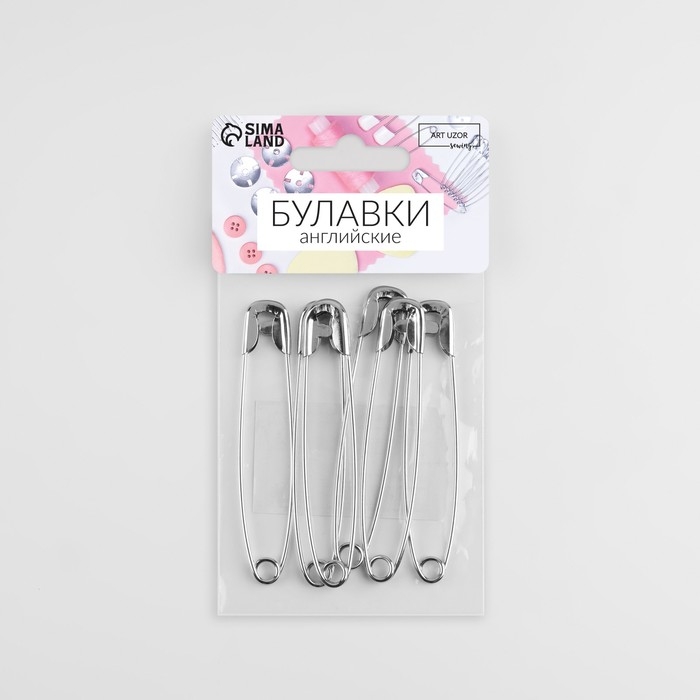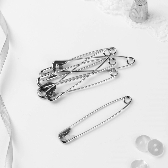 Булавки английские, 75 мм, 6 шт, цвет серебряный
