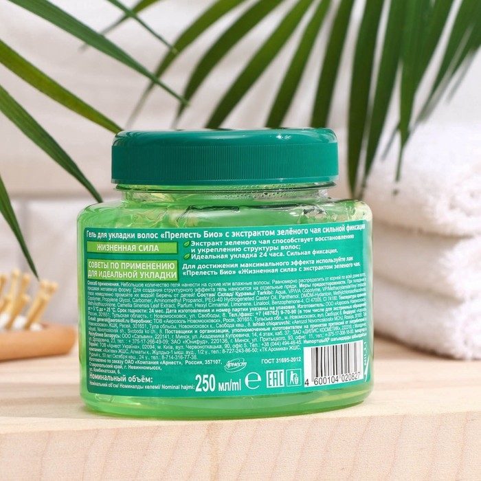 Гель для волос Прелесть Био Жизненная сила - средство для укладки и ухода за волосами с экстрактом зеленого чая. Здоровые волосы и стильная укладка - украшение каждой девушки. Стайлинг гель великолепно фиксирует прическу, формируя аккуратные структурные пряди без лишнего пушка и склеивания волос. Гель для укладки надежно сохраняет прическу в течение всего дня, обеспечивая объемные и легкие локоны без утяжеления. Средство для волос стайлинг гель Прелесть Био содержит до 80% натуральных компонентов в составе. Экстракт зеленого чая способствует укреплению структуры волос изнутри, наполняет жизненной силой и защищает от воздействия окружающей среды.