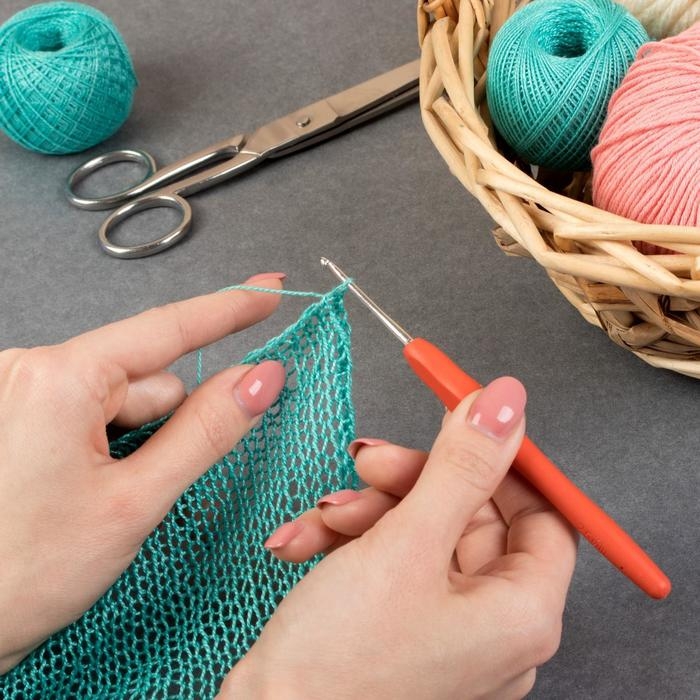 Крючок для вязания, с силиконовой ручкой, d = 2 мм, 14 см, цвет зелёный