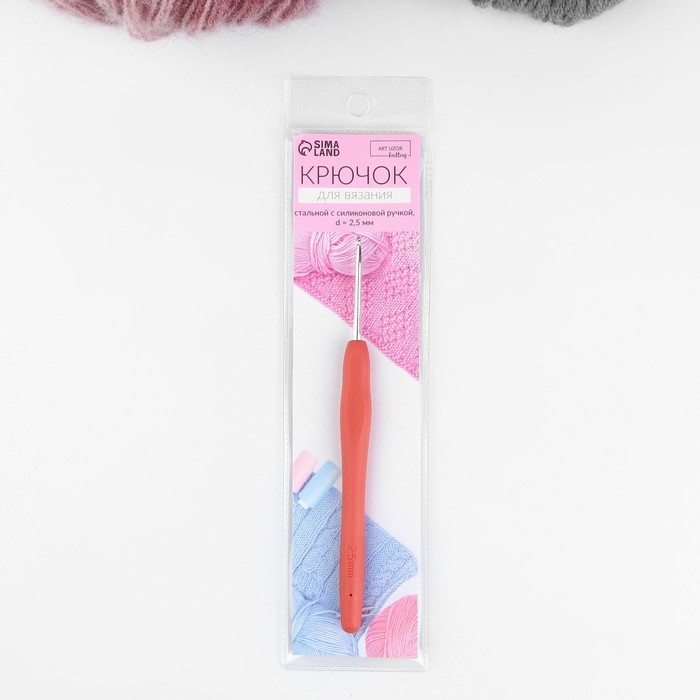 Крючок для вязания, с силиконовой ручкой, d = 2,5 мм, 14 см, цвет оранжевый