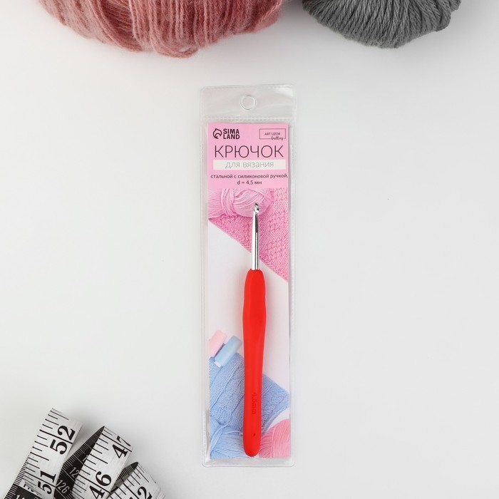 Крючок для вязания, с силиконовой ручкой, d = 4,5 мм, 14 см, цвет красный