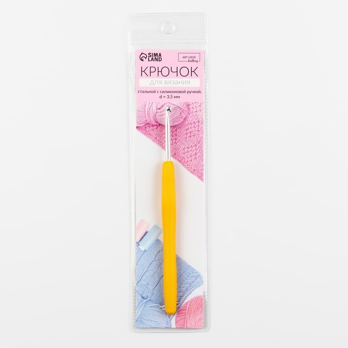 Крючок для вязания, с силиконовой ручкой, d = 3,5 мм, 14 см, цвет жёлтый