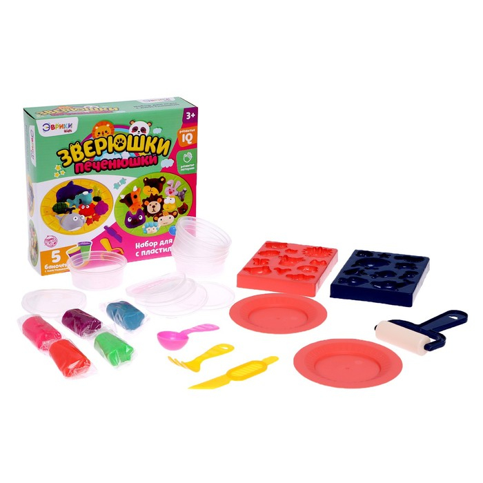 Набор для игры с пластилином «Зверюшки-печенюшки», 5 баночек с пластилином