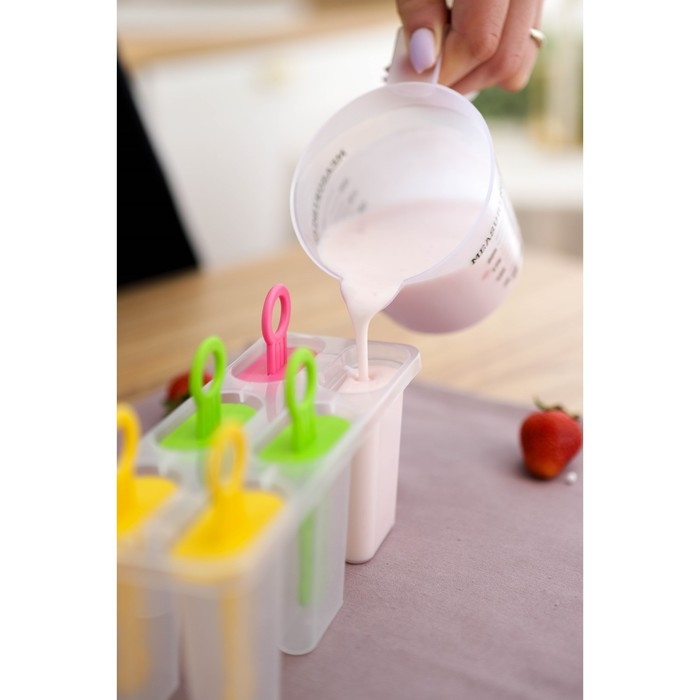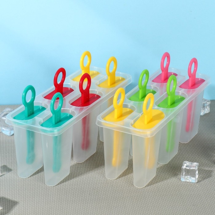 Форма для мороженого Доляна «Моника», силикон, 19,5×11 см, 4 ячейки (6,7×3,2 см), цвет МИКС