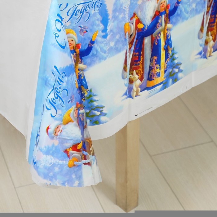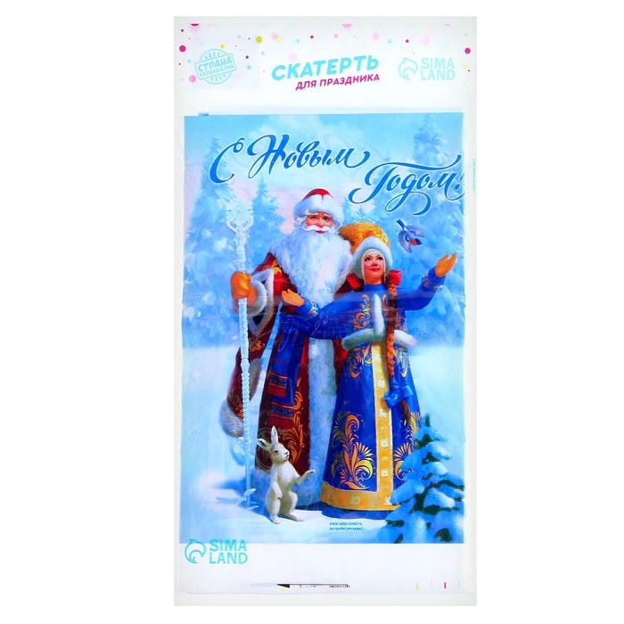 Cкатерть новогодняя «С Новым Годом!», Дед мороз и Снегурочка , 182 х 137см.