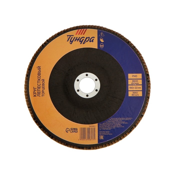 Круг лепестковый торцевой ТУНДРА, 180 х 22 мм, Р40