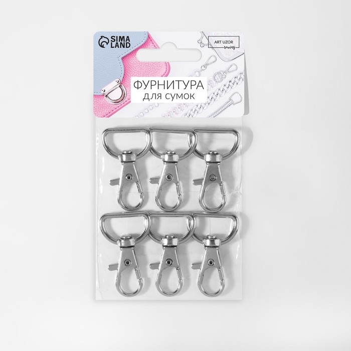 Карабин металлический, 39 × 24 мм / 20 × 2 мм, 6 шт, цвет серебряный