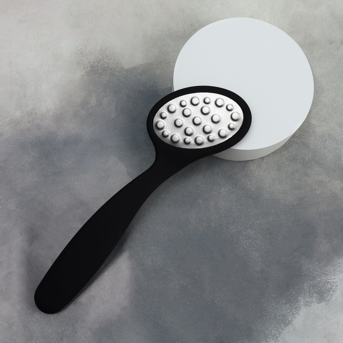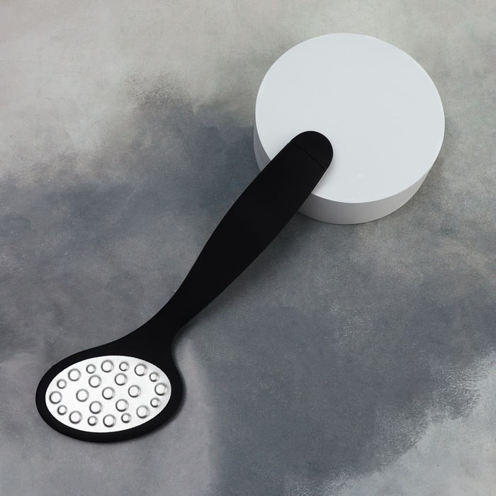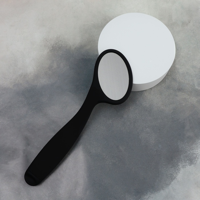 За счёт дизайна, тёркой могут пользоваться не только женщины, но и мужчины. На металлической поверхности с помощью лазера сделаны микрозубчики, которые за 10 пропилов снимут 1 мм огрубевшей кожи. Другая сторона тёрки отполирует уже подготовленный участок до идеального состояния. Проводить такую процедуру можно как на распаренной коже ног, так и на сухой. Комфортную эксплуатацию педикюрного инструмента обеспечит длинная ручка. Между подходами нужно промывать рабочую область в тёплой воде.