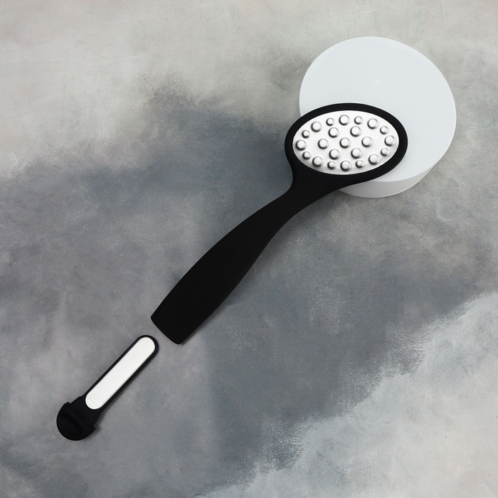 Пилка для ног, лазерная, двусторонняя, с пилкой, прорезиненная ручка, 22 см, цвет чёрный