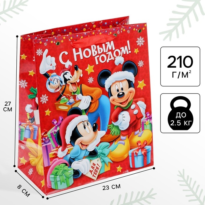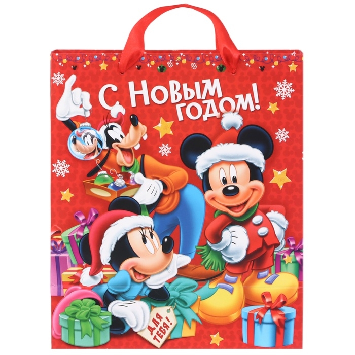 Новый год. Пакет подарочный, 23х27х8 см, упаковка, Микки Маус