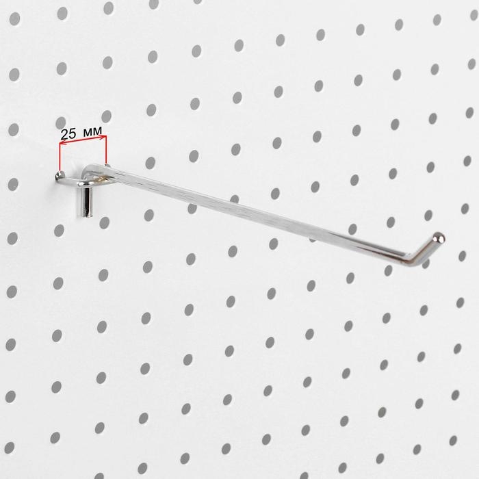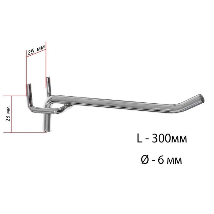 Крючок одинарный для металлической перфорированной панели, d=6 мм, L=30 см, шаг 25 мм, цвет хром