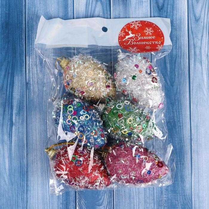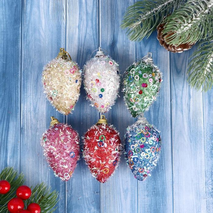 Украшение ёлочное "Шишки в пайетках" (набор 6 шт) 4х7 см, микс