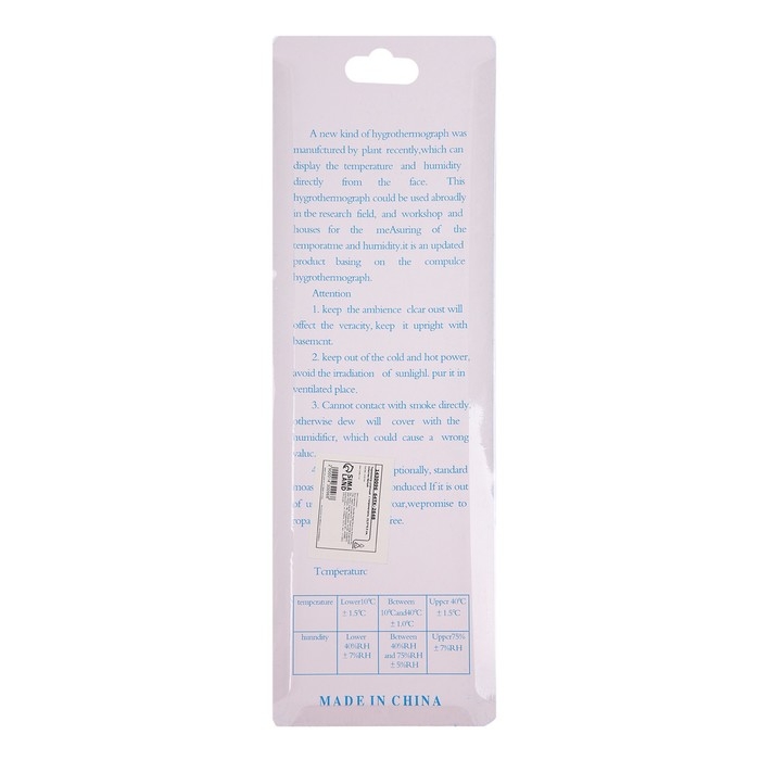 Термометр предназначен для определения температуры и влажности воздуха. Основной циферблат показывает данные по шкале Цельсия и Фаренгейта. На гигрометре, расположенном в нижней части изделия, обозначена зона комфорта уровня влажности в процентах.