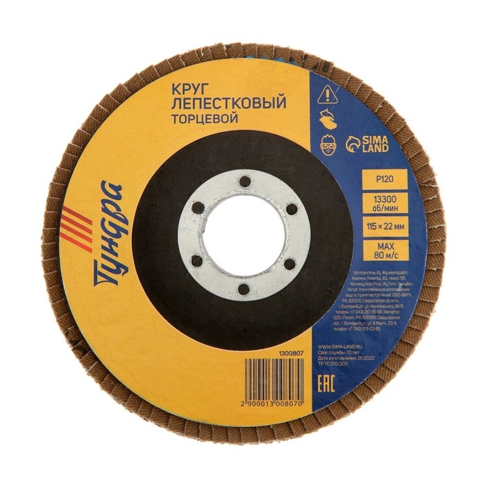 Круг лепестковый торцевой ТУНДРА, 115 х 22 мм, Р120