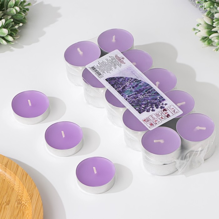 Набор чайных свечей ароматических в термоусадке "Лаванда", 3,8х1,6 см, 3,5 ч, 12 г, 20 штук