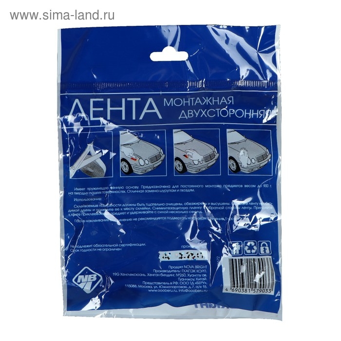 Клеящая лента Nova Bright — это крепёжный элемент, который способен выдерживать большие нагрузки. Лента не растрескивается, не меняет цвет даже при длительном использовании. Двусторонняя клейкая поверхность идеальна для соединения изделий из различных материалов. Подходит для проведения автомобильных работ.