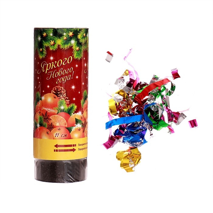 Придайте новогоднему празднику по-настоящему взрывной характер! Пружинная хлопушка стреляет серпантином, конфетти и фольгой. Приводится в действие при повороте специально обозначенной части.